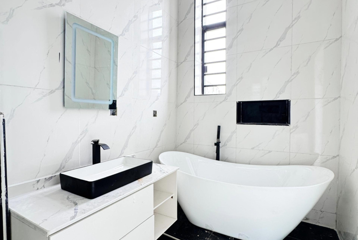 All Rooms Ensuite • Spacious Compound • Massive Fitted Kitchen • Microwave • Beautiful POP lighting • Inbuilt Bluetooth Speakers • Water Heater • Family Lounge • Water Treatment • Serene Neighborhood • Access controlled Estate